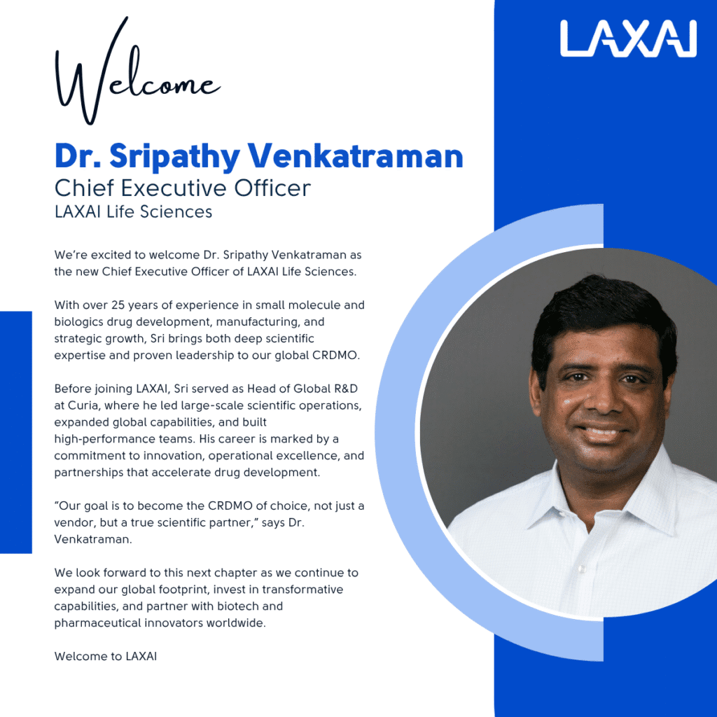 “LAXAI’s reputation for scientific excellence, its strong foundation, and the opportunity to shape and grow a differentiated global business is what drew me to this opportunity,” said Dr. Venkatraman. “I’m excited to build on this momentum, expand our global footprint, and invest in capabilities that matter to biotech innovators. Our goal is to become the CRDMO of choice, not just a vendor, but a true scientific partner.”